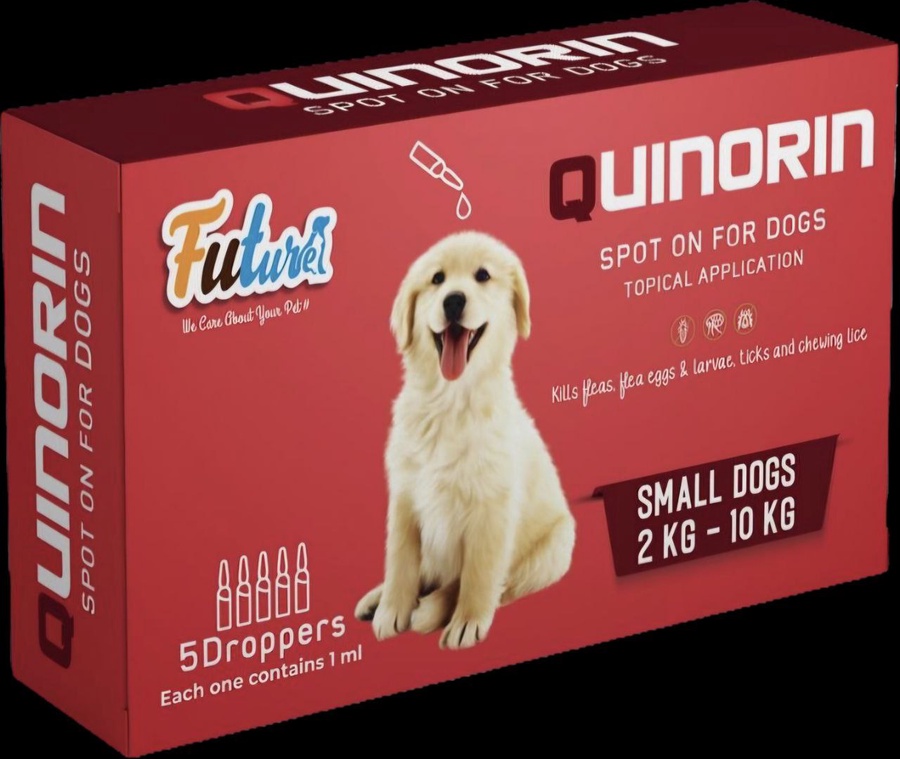 Quinorin Spot On for Small Dogs is a topical treatment specially formulated for small dogs to eliminate and control external parasites including fleas, flea eggs, larvae, ticks, and chewing lice. This advanced formula provides fast and long-lasting protection, helping keep your dog healthy and comfortable.