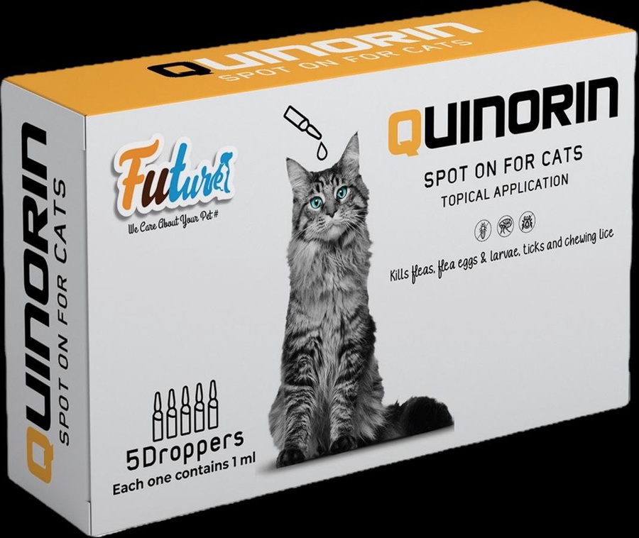 نقط Quinorin Spot On Cat للقطط anti flea & tick تقضي على البراغيث وبيضها واليرقات والقمل، لحماية فعالة من الطفيليات.
