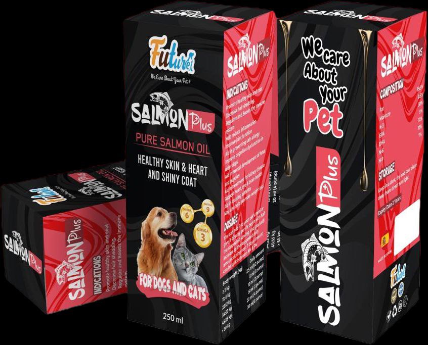 Salmon Plus 100ml is a premium dietary supplement for dogs and cats, made from pure salmon oil to support overall health. This high-quality oil is rich in Omega-3 fatty acids, which promote healthy skin, improve coat shine, and support cardiovascular health.