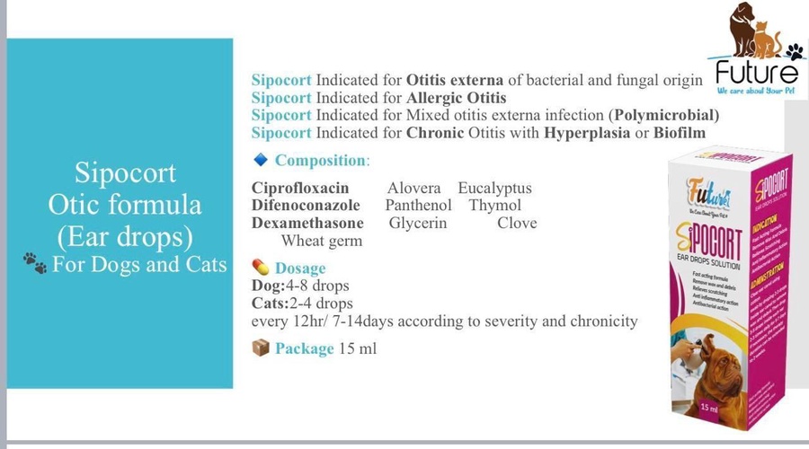 Sipocort / Xpocort Ear Drops is a veterinary ear solution specially formulated for dogs and cats to help remove wax and debris while relieving itching and irritation. This effective formula supports ear hygiene and helps maintain a clean and healthy ear canal.